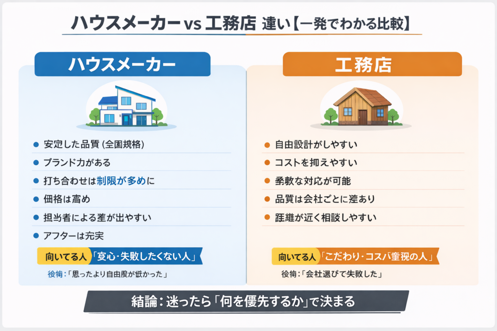 ハウスメーカー vs 工務店【一発比較】